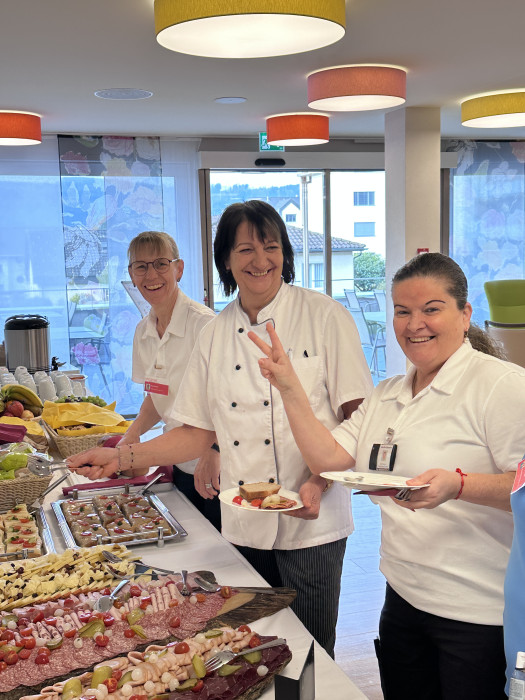 Als Zeichen der Anerkennung lädt die Geschäftsleitung alle Mitarbeitenden zu einem gesunden, nachhaltigen „Zmorgenbrunch“ am MO, 23. März ein. Jede*r darf sich über eine 30-minütige Pause freuen, um gemeinsam zu geniessen und zu feiern. Zusätzlich erhalten alle Mitarbeitenden der Hotellerie und Hauswirtschaft ein kleines, gesundes Präsent – als Dankeschön für ihren wertvollen Einsatz.