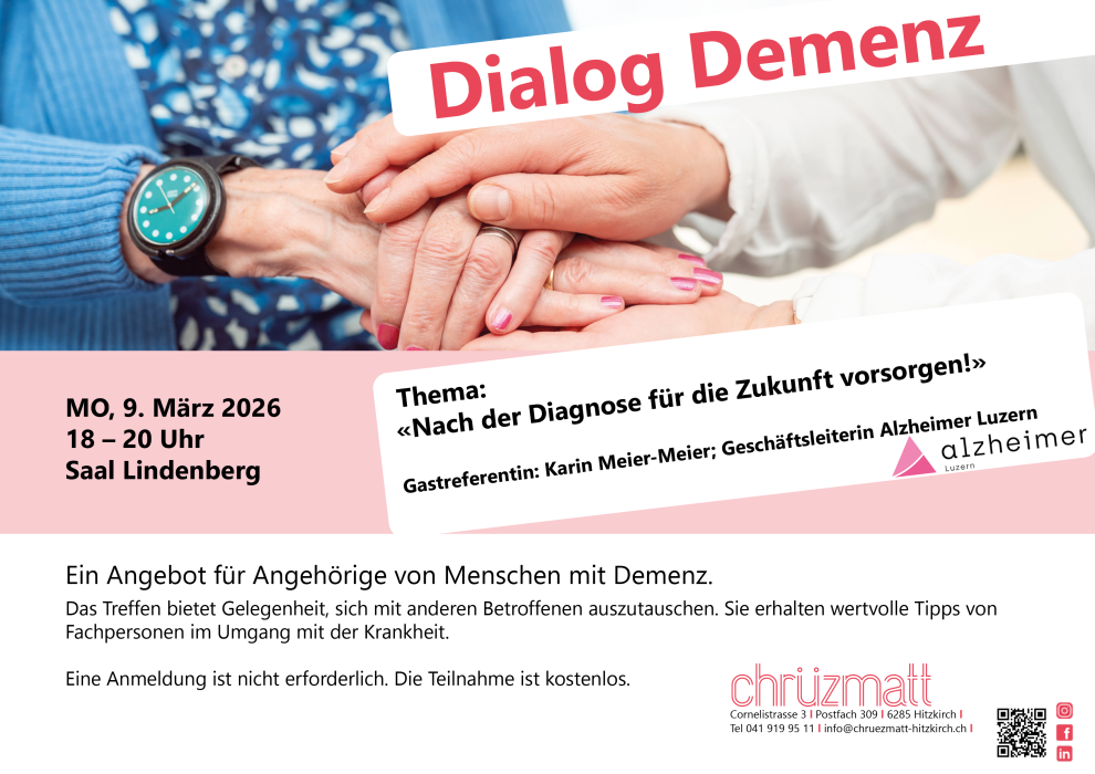 👉 Das Thema des Anlasses “Nach der Diagnose für die Zukunft vorsorgen” mit der Gastreferentin Karin Meier-Meier, Geschäftsleiterin Alzheimer Luzern.