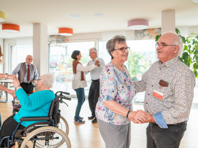 Schwingen Sie am Samstag, 25. Oktober 2025 gemeinsam mit unseren Bewohnenden das Tanzbein zur Musik von Rahel Bear & Mark Dean.