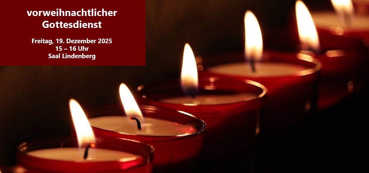Am Freitag, 19. Dezember findet im Saal Lindenberg ein vorweihnachtlicher Gottesdienst statt.